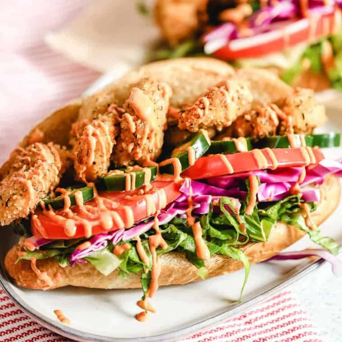 It's easy to make the classic southern po boy sandwich at home. Crispy fried shrimp is served on crusty French bread and smothered with homemade remoulade sauce. Just pile on your favorite toppings. Get the recipe: Shrimp Po Boy Sandwich