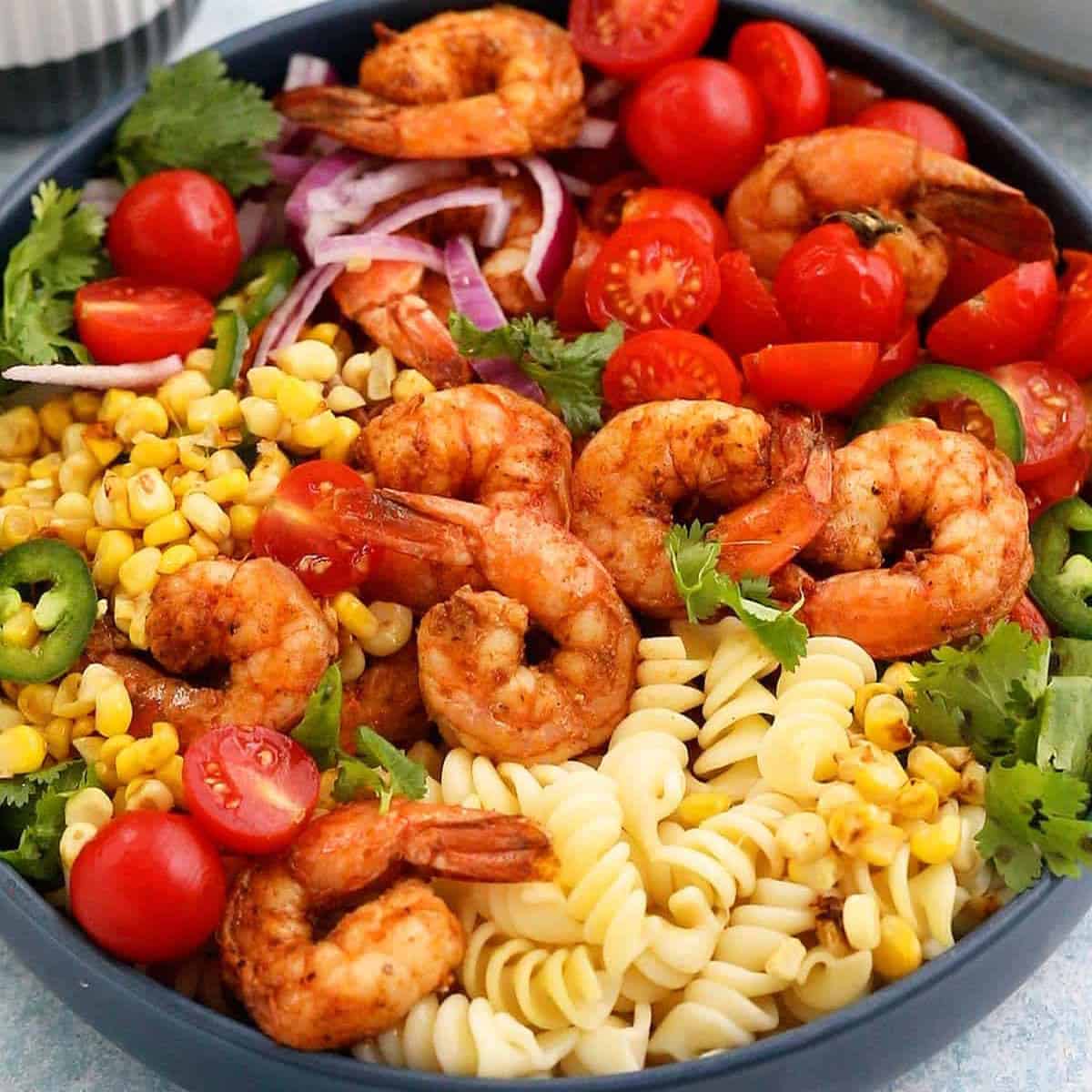 This pasta salad is loaded with flavorful Mexican-spiced shrimp, along with tomatoes, corn, red onion and jalapenos. Then it's topped with a delicious creamy and spicy avocado dressing. You'll want to make this all summer. Get the recipe: Shrimp Pasta Salad