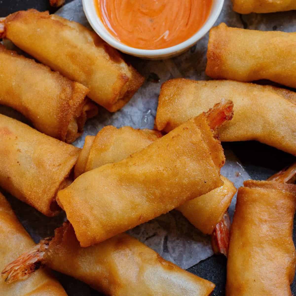 Fried shrimp spring rolls are a quick and easy appetizer with succulent, tender shrimp wrapped in a crispy spring roll wrapper. Their perfect as a party appetizer served with a dipping sauce. Get the recipe: Fried Shrimp Spring Rolls