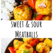 Sweet and sour meatballs have a delicious balance of sweet and tangy flavors. Made with lean ground turkey and a homemade sweet and sour sauce with red bell pepper and pineapple chunks, these meatballs are a healthier twist on a classic favorite.