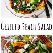 This grilled peach salad is a delicious way to enjoy those fresh and juicy summer peaches. With sweet and smoky grilled peaches, peppery arugula, creamy feta, and crunchy toasted walnuts, this beautiful salad has all the elements you need for a perfect summer salad. A tangy maple Dijon vinaigrette ties it all together.