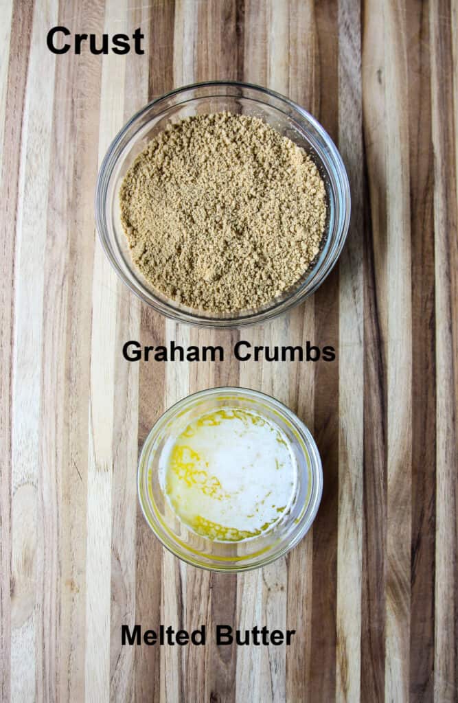 - In a small bowl, mix together graham crumbs and melted butter.