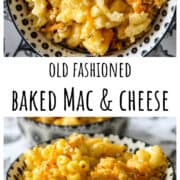You can make homemade stovetop macaroni and cheese almost as easily, and I often do. But this old fashioned baked macaroni takes it up one more step. In the oven, it gets even creamier and the crunchy topping is a delicious contrast to all that creamy, cheesy, goodness.