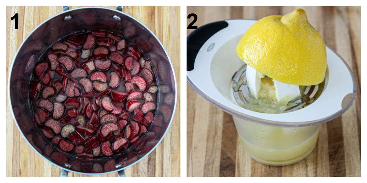- Juice the lemons while the rhubarb is cooking.
