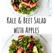 This vibrant and nutritious kale and beet salad with apples is a delicious combination of earthy beets, crisp apple slices, and hearty kale, tossed in a simple maple and cider vinaigrette. The perfect blend of flavors and textures in this simple salad will have you wanting to make it again and again.