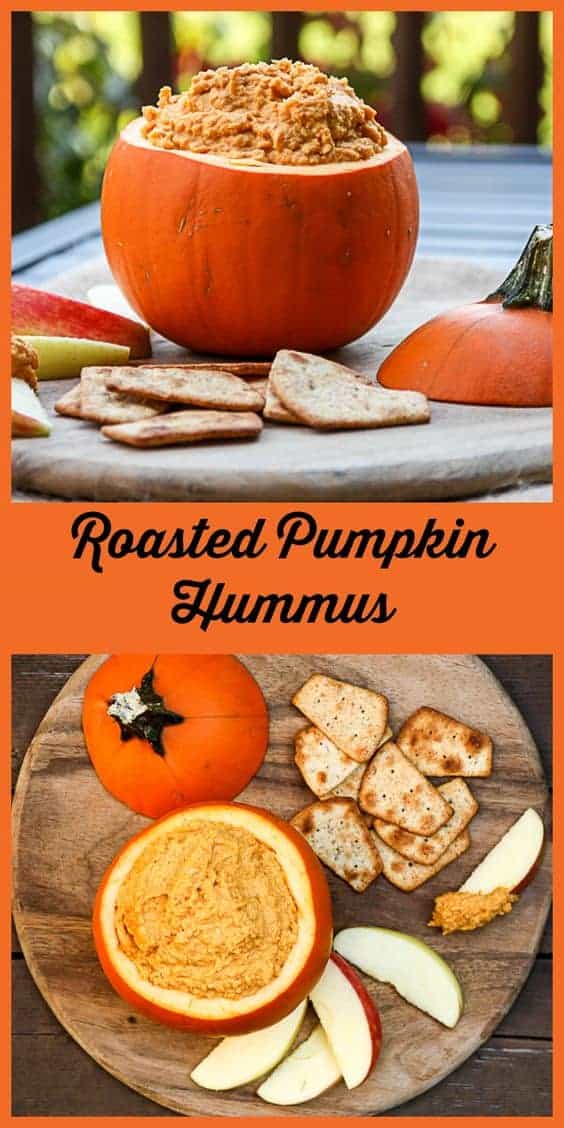 Roasted Pumpkin Hummus is a great way to use some of this season's abundance of pumpkins showing up in markets everywhere. When I saw this cute little mini pumpkin, I knew I had to use it for making this roasted pumpkin hummus, and then for serving it, too.